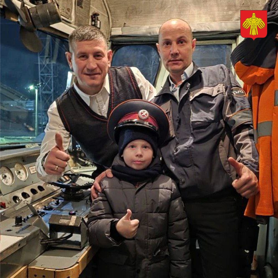 Он уже побывал на экскурсии в городском ДЕПО, но особое место в его сердце занимала мечта увидеть мощную машину изнутри и прокатиться в кабине машиниста. И вот, наконец, она сбылась – Саша прокатился на тепловозе до станции Кожва. Путешествие ребёнку очень понравилось.