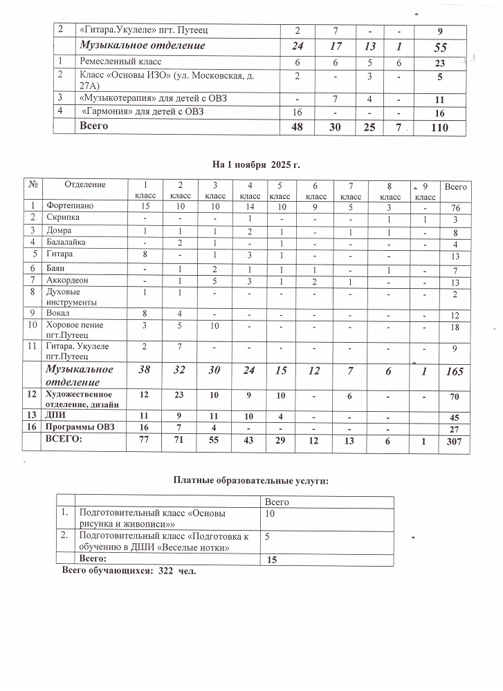 Общая численность обучающихся  на 1 ноября 2025 года  322 чел.
