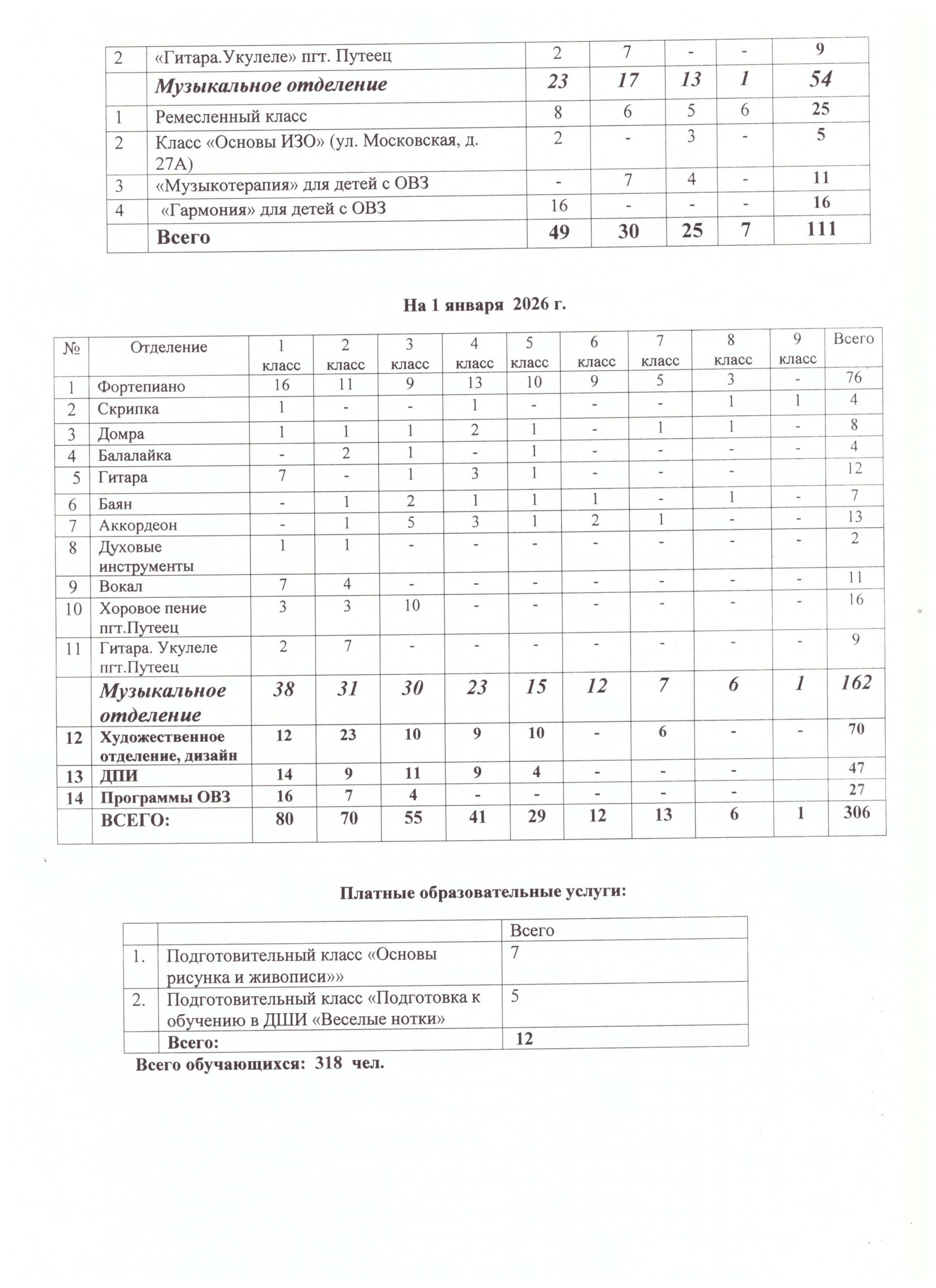 Общая численность обучающихся  на 1 января 2026 года  318 чел.