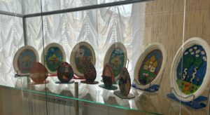 Сегодня все творения заняли почётное место на школьной выставке. Гостей встречают: нарядные пасхальные яйца с изысканными узорами; красочные фигурки курочек и зайчиков; атмосферные композиции с вербой, свечами и куполами; живописные и графические работы, и все работы наполнены теплом и светом.