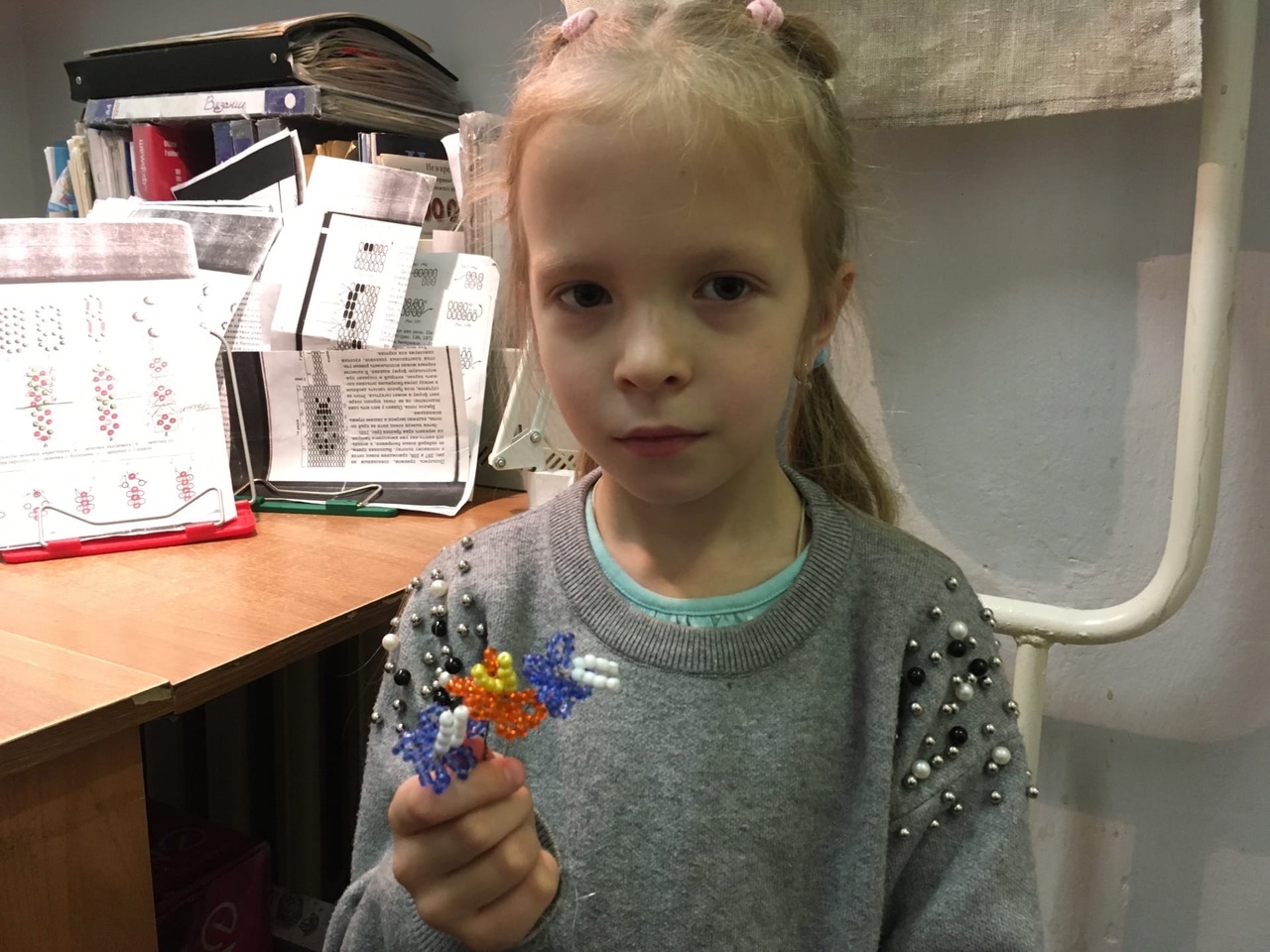 Цветы из яркого бисера сплели маленькие ученицы преподавателя Г.Я. Огородниковой.