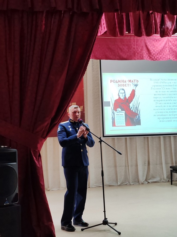 Представитель Министерства обороны РФ в доступной и увлекательной форме рассказал ребятам о ключевых этапах войны, о подвигах солдат Красной армии, о тех ужасах и потерях, которые пришлось пережить стране. Его рассказ был наполнен эмоциями и заставил задуматься о цене мира.