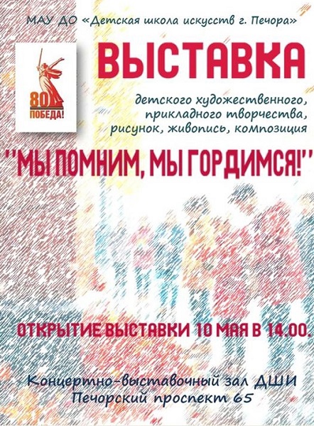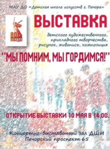 10 мая в концертно-выставочном зале ДШИ состоялось открытие художественной выставки «МЫ ПОМНИМ, МЫ ГОРДИМСЯ», приуроченной к 80-летнему юбилею Победы в ВОВ и году защитника Отечества.