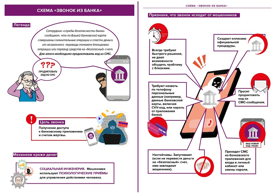 Обратите внимание! Основные мошеннические схемы! 29.01.2026 Выкл. Схема “Ошибочный денежный перевод”: Схема “Звонок из банка”: Схема “Звонок из страховой компании”: Схема “Звонок о “получении скидок на жилищно-коммунальные услуги”: